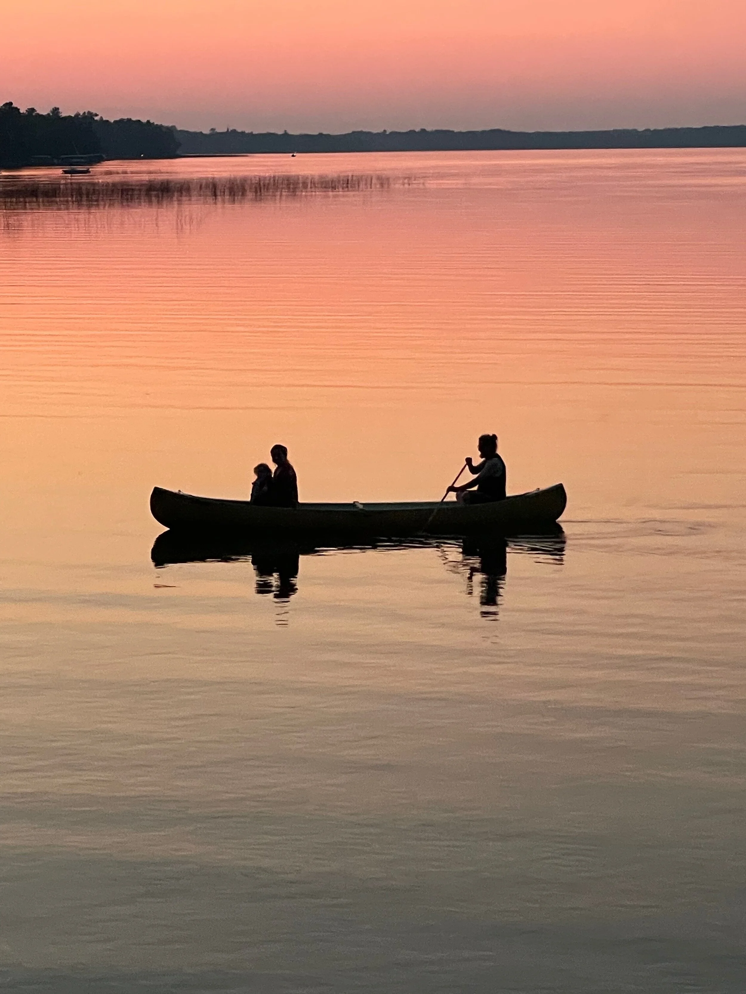 Our little family enjoying a canoe ride into sunset on a lake up north.