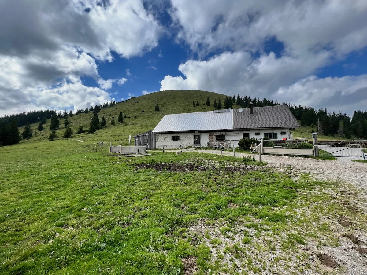 …at the hut below the mountain top. Can you find a cow? And the cross at the peak?